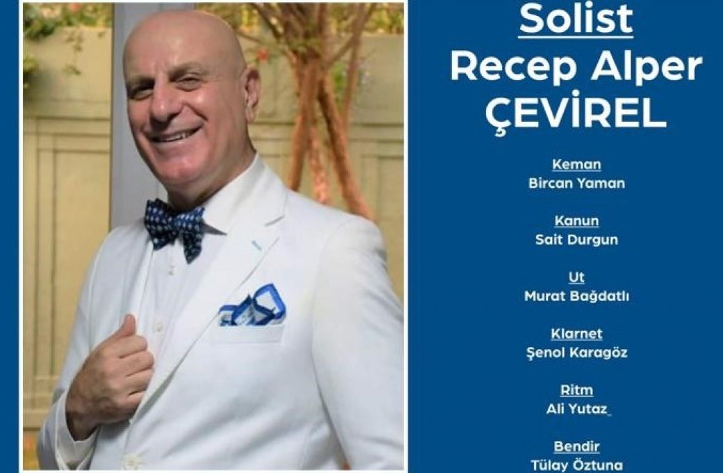 Türk Sanat Müziği’ne önemli katkıları olan Cumhurbaşkanlığı Türk Müziği Ses sanatçısı Recep Alper ÇEVİREL ve orkestrası tarafından Türk Müziği Konseri verilecektir.